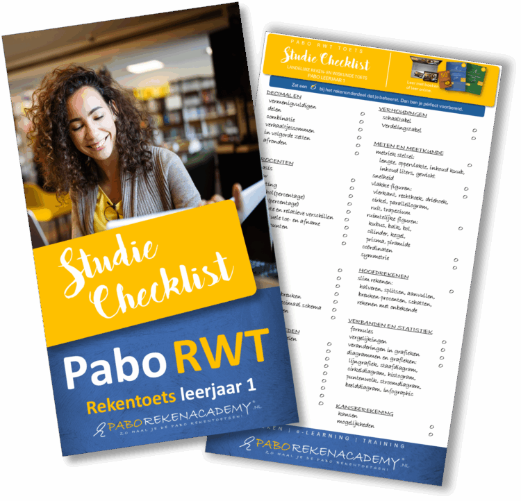 Met de RWT Studie Checklist kun je gemakkelijk bijhouden of je alle rekenonderdelen hebt ingetraind.